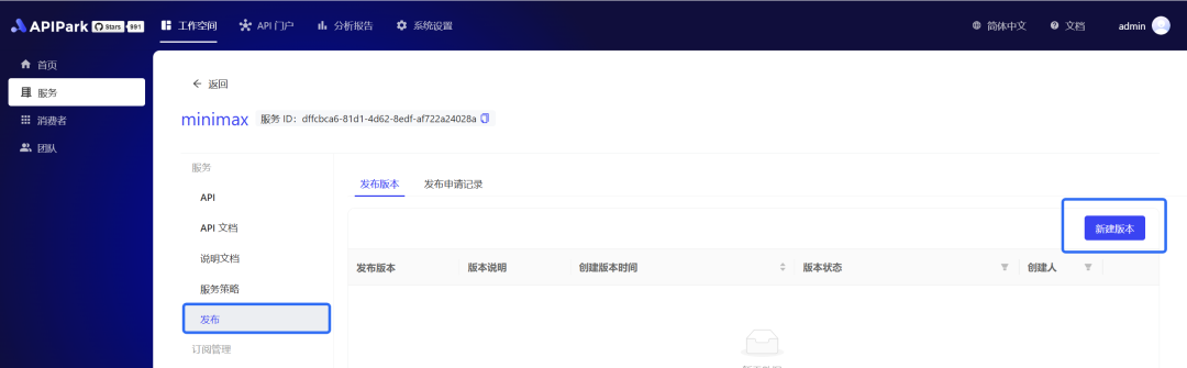 打开该「AI 服务」选择左侧「发布」并配置完成「新建版本」的基本信息即可发布。