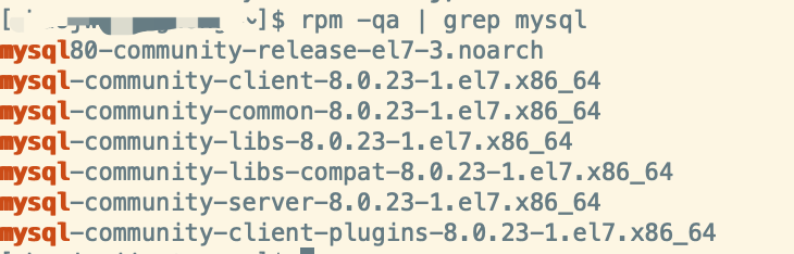 使用rpm -qa | grep mysql命令查询8.0.23安装了哪些包: