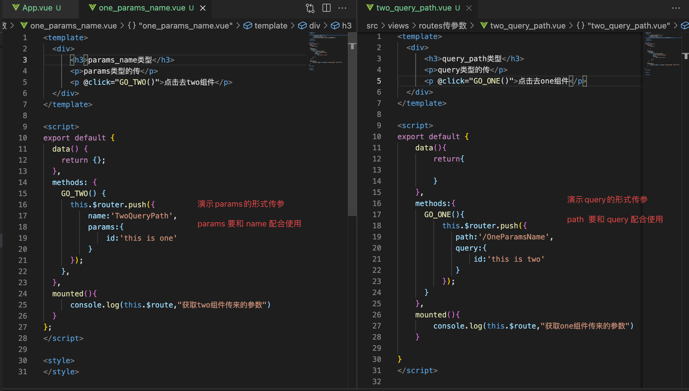 如图:1.1 params的方式传参,对应我的文件是 one_params_name.vue