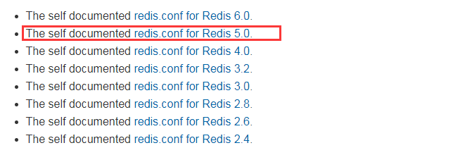 进入redis官网https://redis.io/topics/config找到相同版本的配置文件,下载到本地上传至/mydata/redis/conf/目录下