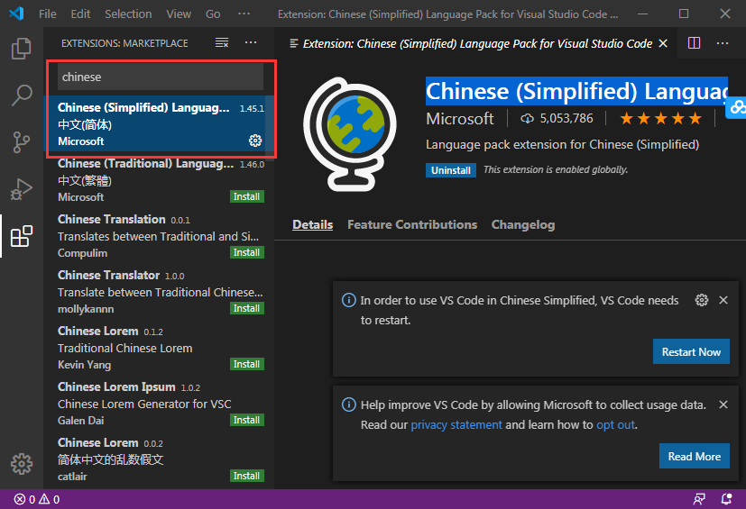Chinese (Simplified) Language Pack for Visual Studio Code