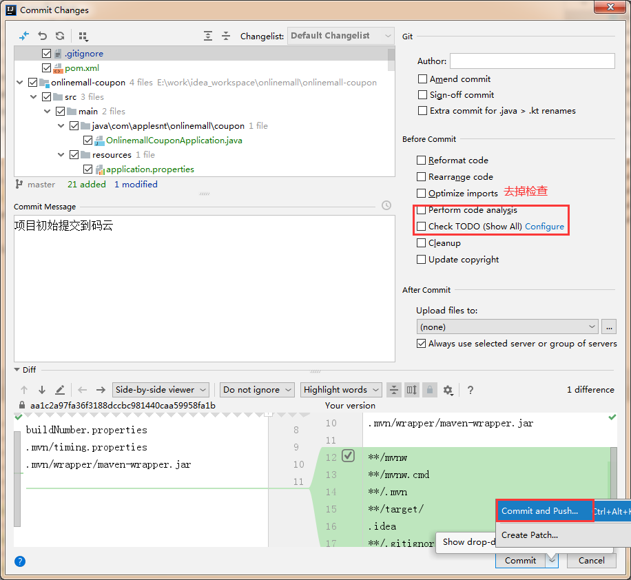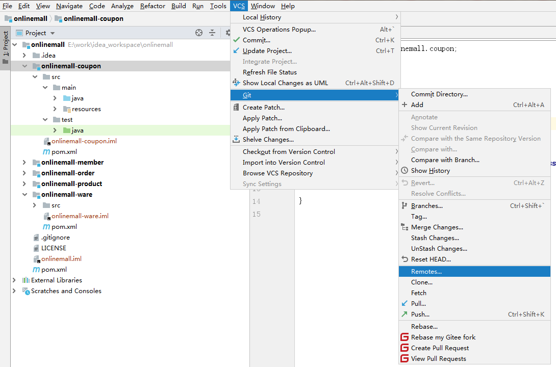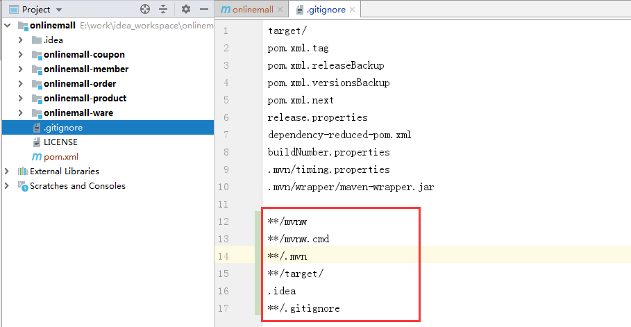 打开onlinemall项目下的.gitignore文件,添加如下内容