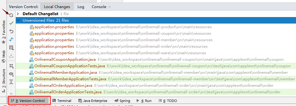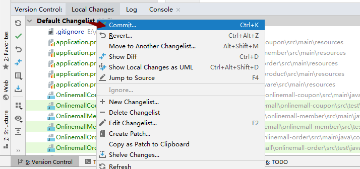 4:过滤无需提交git的文件打开version Control控制面板,查看可提交文件