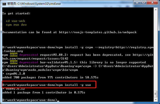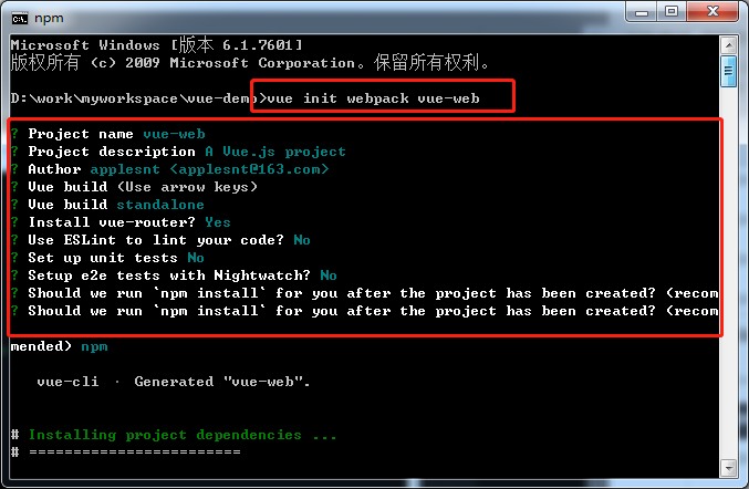 cmd 进入文件夹 初始化项目vue-web