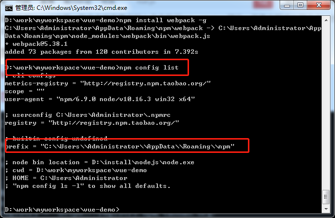 npm config list(如果不存在 可以选择性安装cnpm vue webpack)