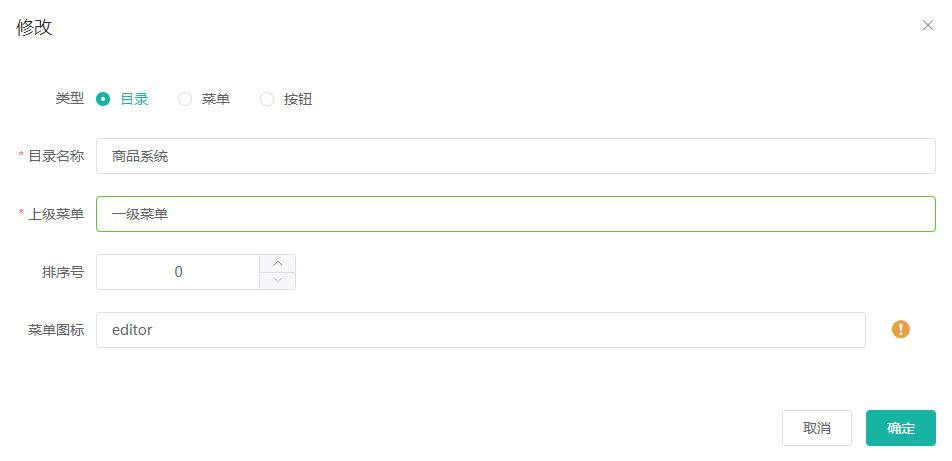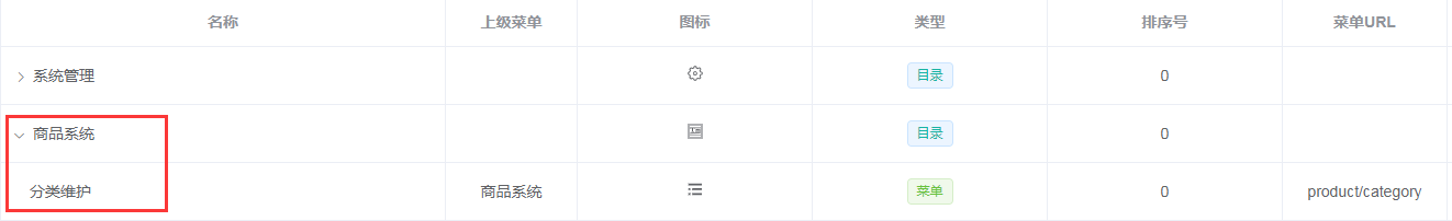 系统管理--》菜单管理--》添加 创建商品系统目录