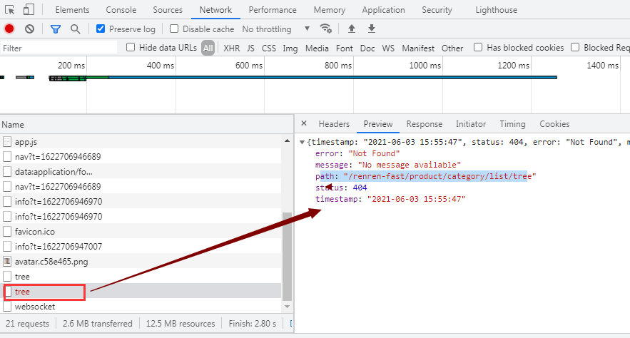 登录后台点击“分类维护”菜单,会出现404错误,因为发出的请求会自带当前项目的path(/renren-fast/product/category/list/tree)