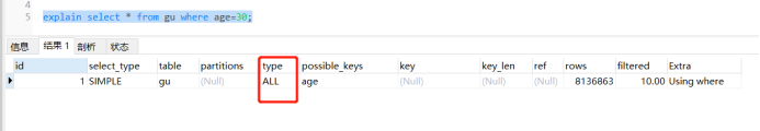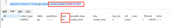 3、如果对sql语句有没有使用索引感到纠结,就使用命令explain来验证