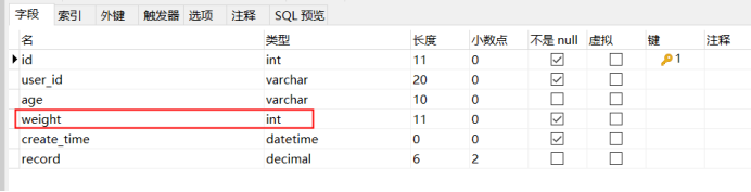 增加record字段,类型为decimal(6,2)