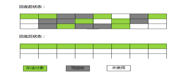 缺点:会移动对象的内存地址,这样他们的引用地址也要更新;后果是GC停顿的时间会增加。