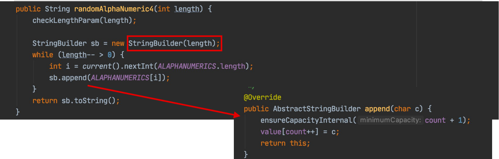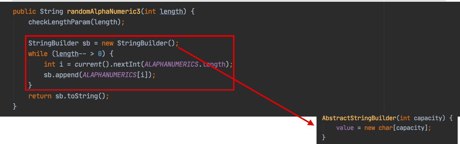 - 既然使⽤了char[],为什么还使⽤StringBuilder?