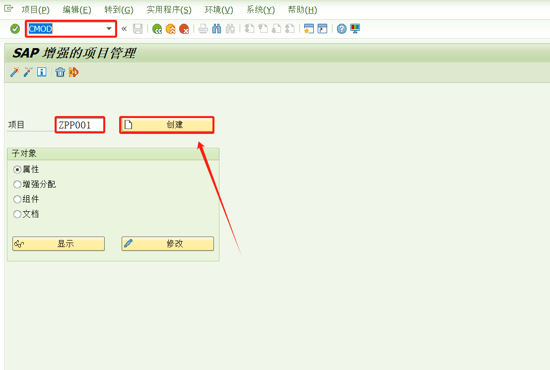 事务码:CMOD点击创建