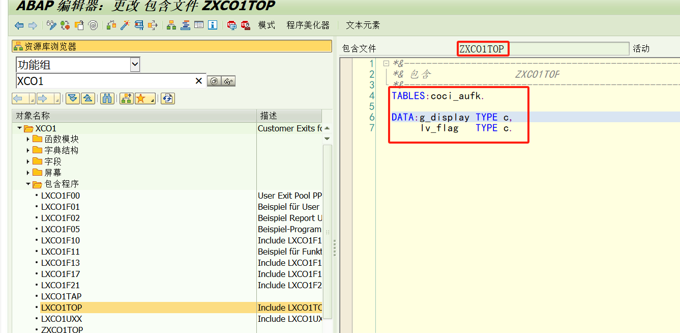 在屏幕中添加我们要增强的字段,字段来源COCI_AUFK