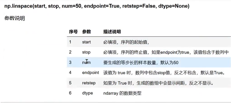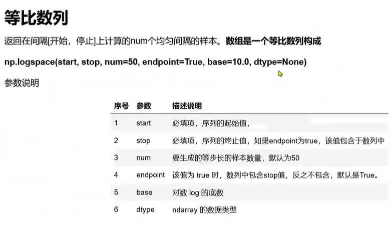 numpy-arange,linspace(等差数列),logspace(等比数列)