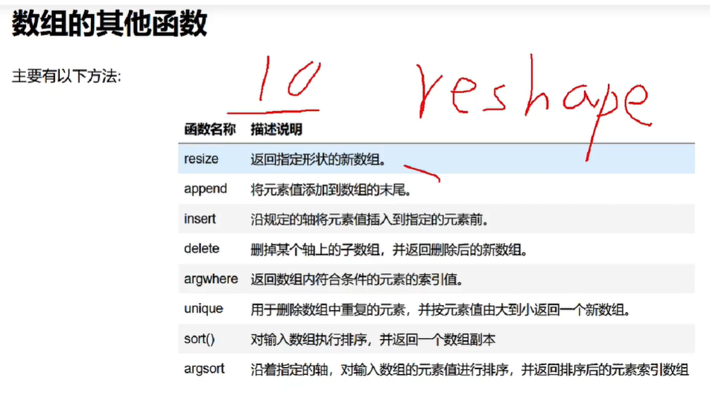 reshape 的修改是不能超过元素大小的,比如有10个元素,你可以修改2行5列或者5行2列,但是如果超过数组的长度,就要使用resize