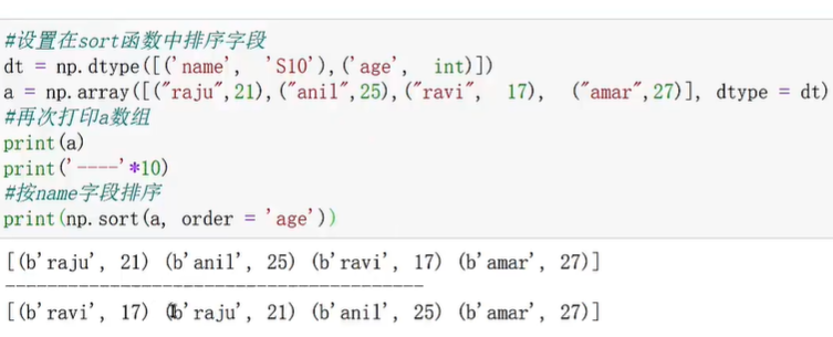 不指定axis,是按行排序;排序后的数组需要用新的变量来接,原数组不发生改变