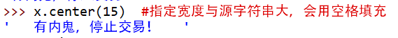 center(width,fillchar=' ')width用来指定字符串的宽度,如果指定的宽度小于或者等于源字符串,直接是源字符串的输出,如果指定宽度大于源字符串,那么其余空位会用空格填充,源字符串放在中间