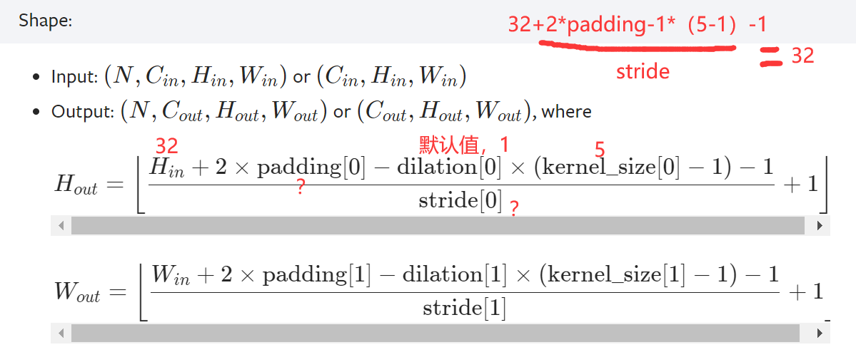卷积操作一般会使图像尺寸变小的,因为第一层卷积,卷积操作之后图像大小仍然是32,所以有可能用了padding进行填充。 根据公式算一算: