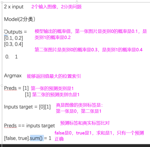 Argmax,它可以输出横向中概率值最大的那个的位置索引。转化完之后,再让模型输出的标签和真实图像的标签进行比较。如果全部相等则表明预测全部正确,如果个数不一致代表不相等。