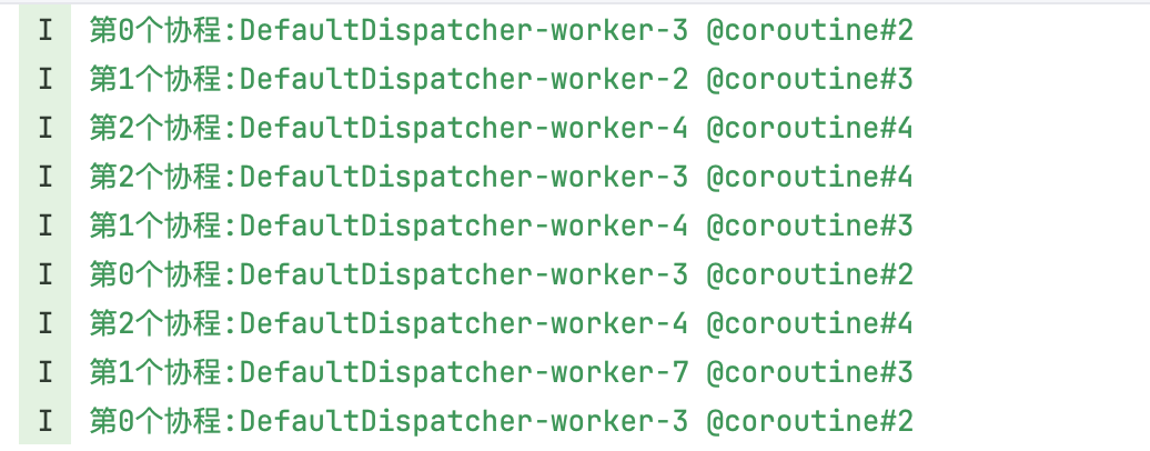 可以看到第0个协程运行在DefaultDispatcher-worker-3这个线程上,