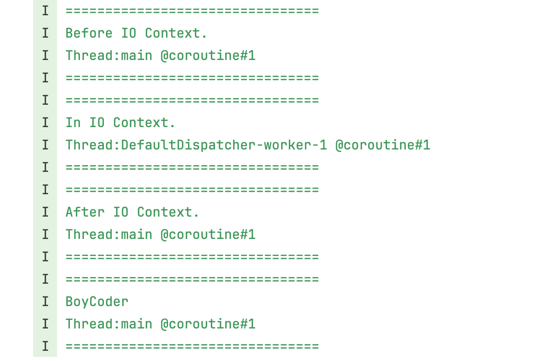 可以看到,我们在 withContext() 这里指定线程池以后,