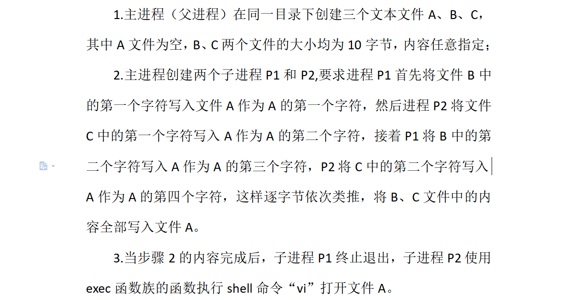 解析:这道题的1,3问比较简单,就不多做介绍,主要是第2问。拿到这道题后我立马就想到了可以用进程间通信解决,回忆了一下,感觉明明学过,但是不知从何下手,因此,第一版代码用的时间差来控制进程的写入。