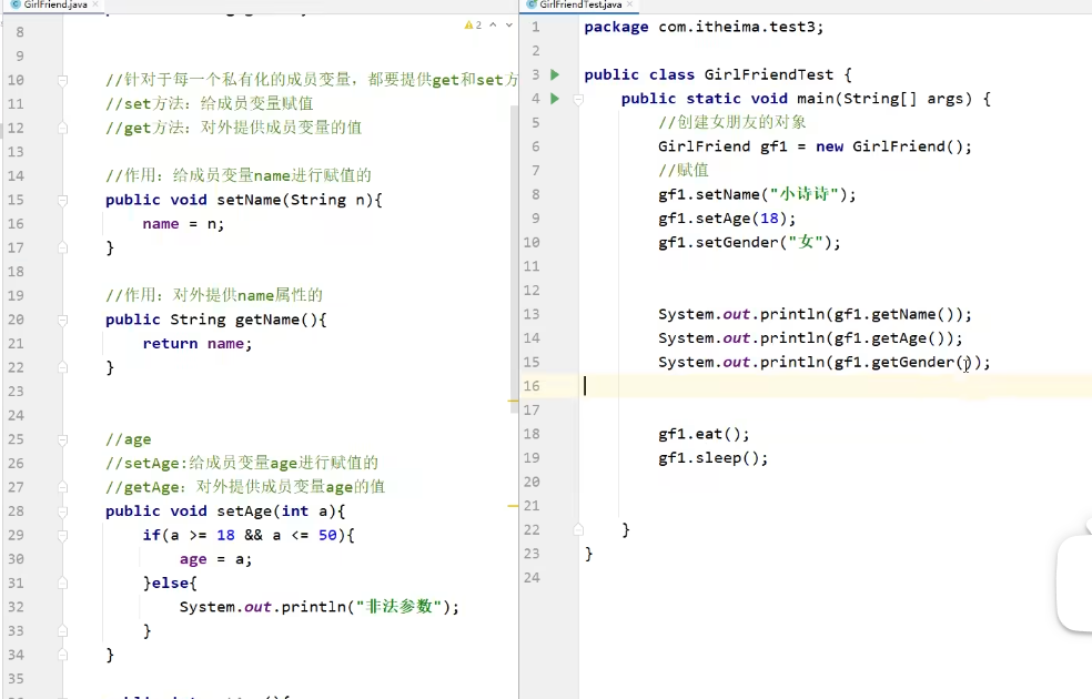 所以需要有public方法来判断数据是否正确+赋值----public void setName(){},小括号里的形参是用来接受数据用的