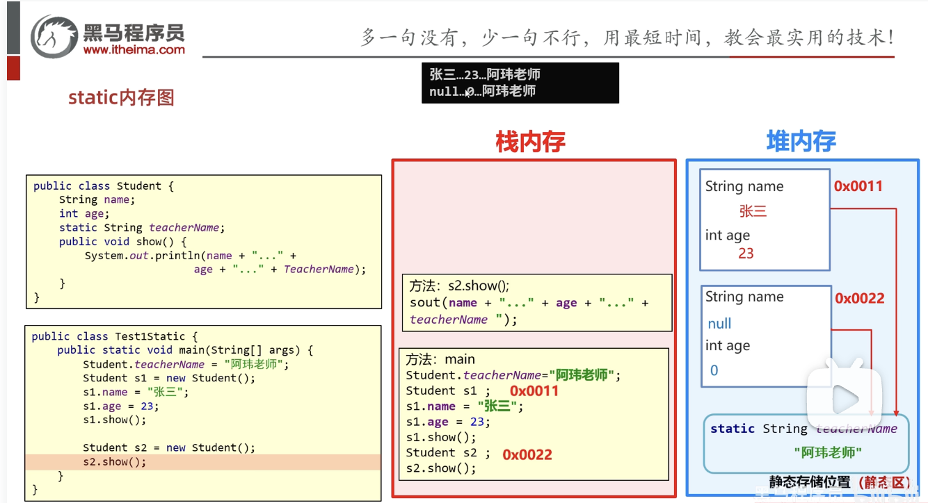 static的内存图:静态变量是随着类的加载而加载的,优先于对象出现