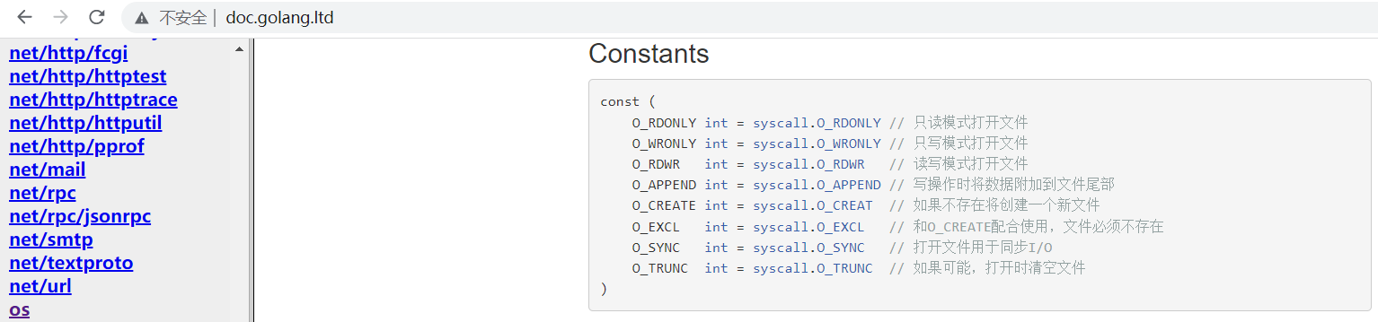 O_CREATE int = syscall.O_CREAT // 如果不存在将创建一个新文件