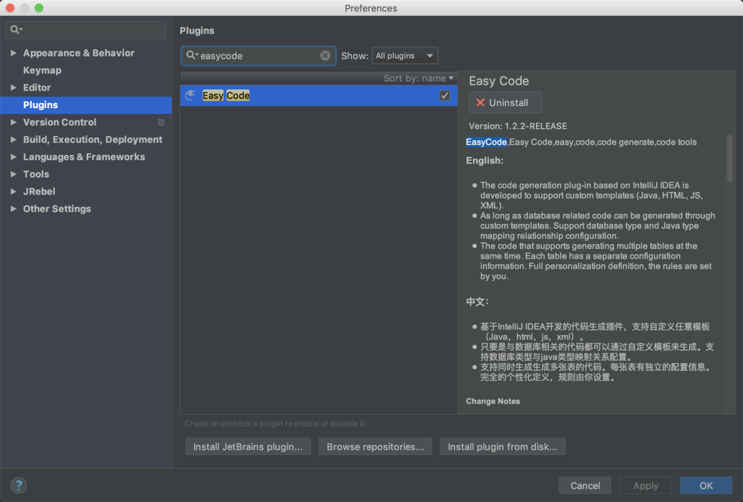 Easycode 是 idea 的一个插件,可以直接对数据的表生成 entity,controller,service,dao,mapper, 无需任何编码,简单而强大。