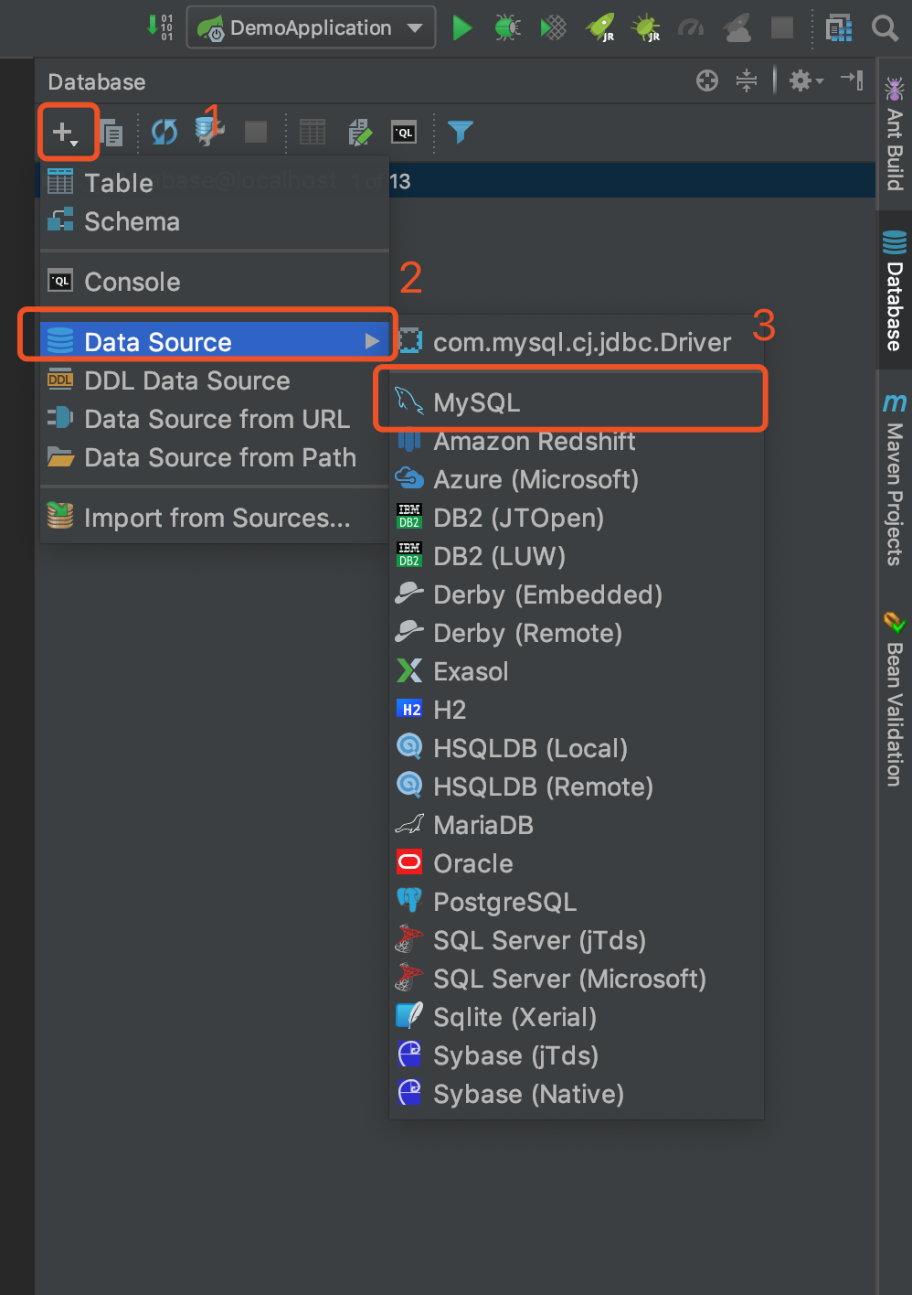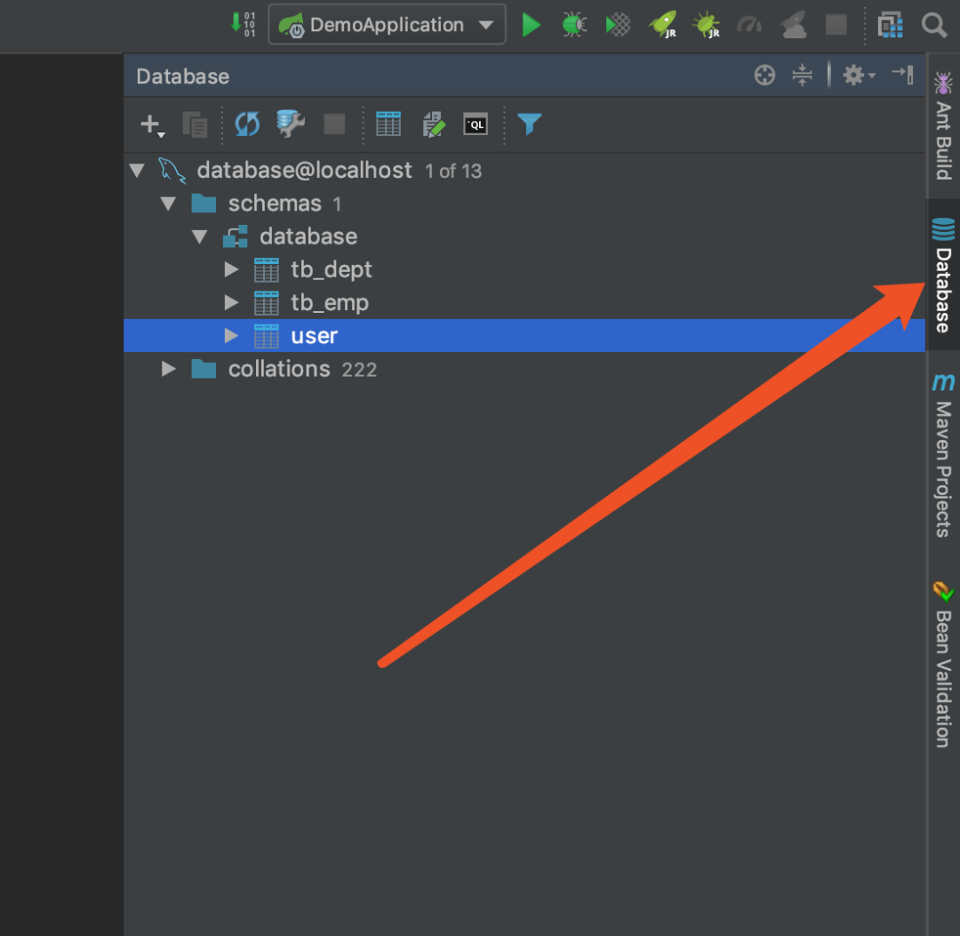 建好 SpringBoot 项目之后,如下图所示,找到这个 Database