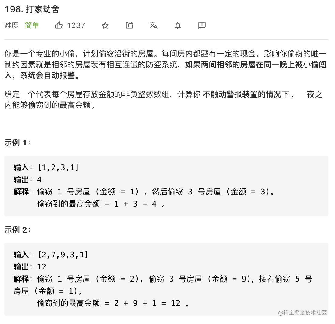 首先找一下子问题:小偷偷或者不偷第n间房子;