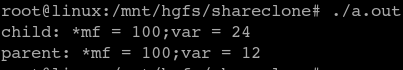 printf("parent: *mf = %d;var = %d\n",*mf,var);