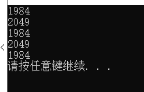 #include <stdio.h> #include<stdlib.h> int main() { int x[2][4] = {{1, 9, 8, 4}, {2, 0, 4, 9}}; int i, j; int *p; // 指针变量,存放int类型数据的地址 int(*q)[4]; // 指针变量,指向包含4个int型元素的一维数组 // 使用数组名、下标访问二维数组元素 for (i = 0; i < 2; ++i) { for (j = 0; j < 4; ++j) printf("%d", x[i][j]); printf("\n"); } for (p = &x[0][0], i = 0; p < &x[0][0] + 8; ++p, ++i) { printf("%d", *p); if ((i + 1) % 4 == 0) printf("\n"); } // 使用指针变量q间接访问二维数组元素 for (q = x; q < x + 2; ++q) { for (j = 0; j < 4; ++j) printf("%d", *(*q + j)); printf("\n"); system("pause"); } return 0; }