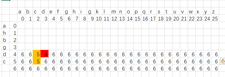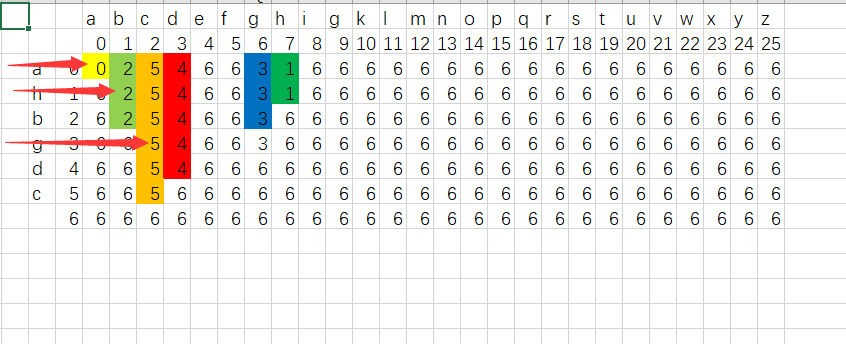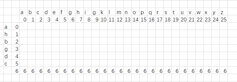 就是寻找 给定字符串“ahbgdc”中每个位置的字符 在 26个字母表中与之对应的位置