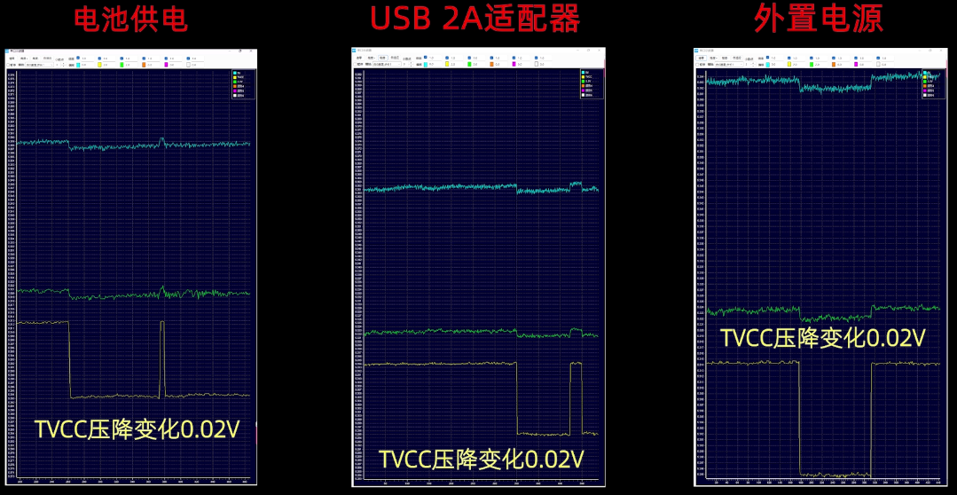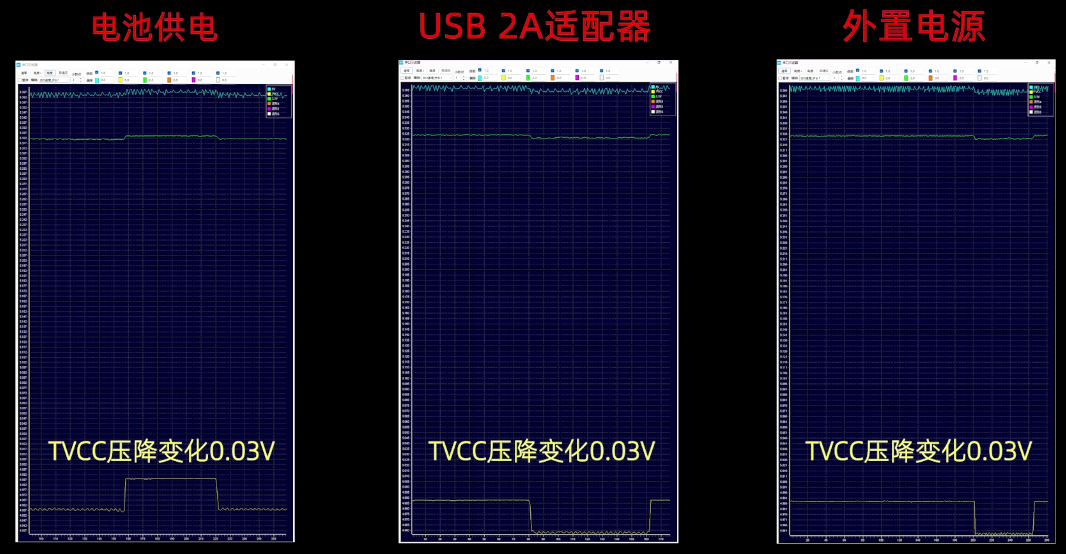TVCC(Target VCC目标板供电) = 3.3V,不带负载到带负载3.3V,320mA变化
