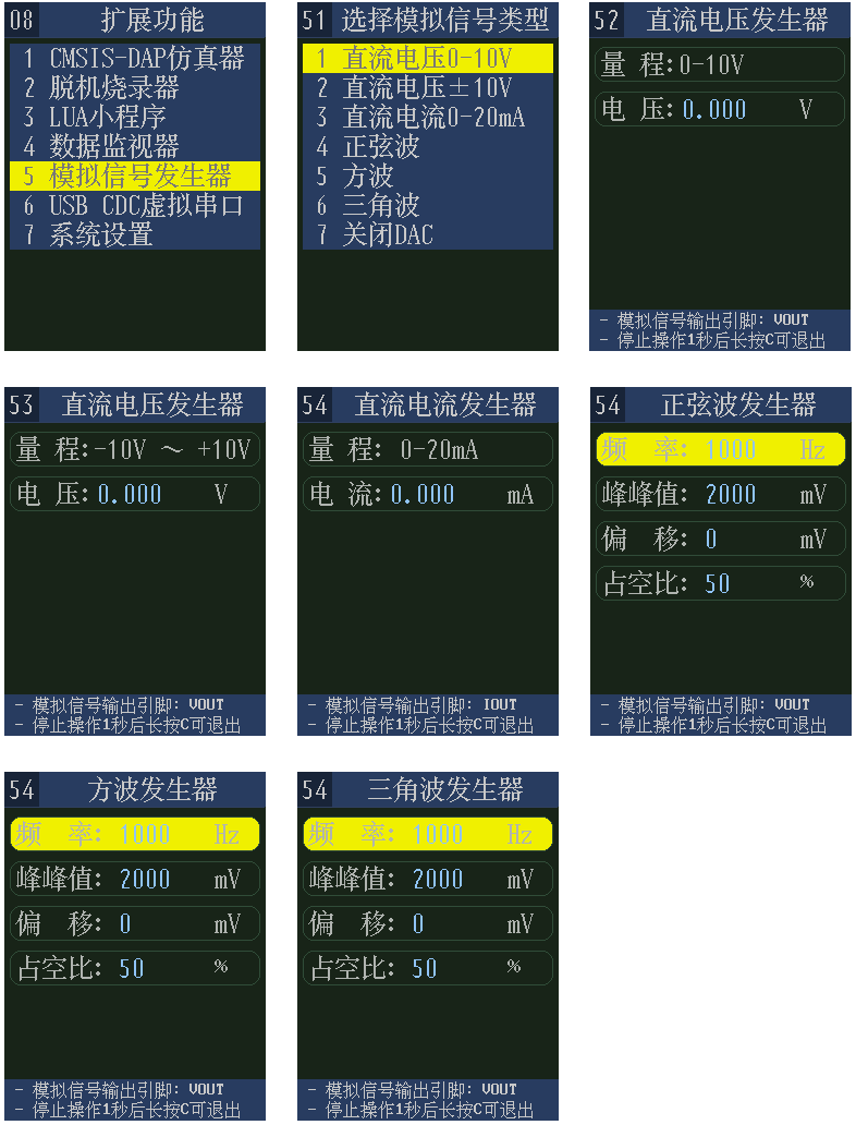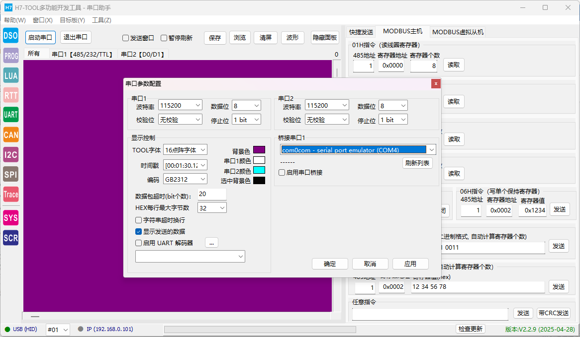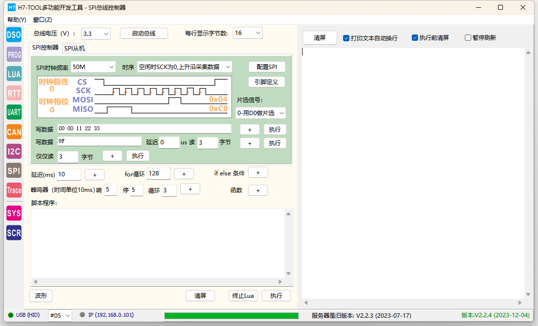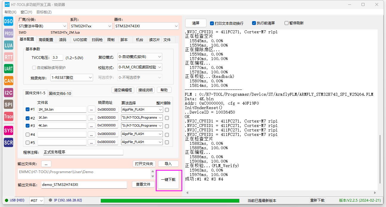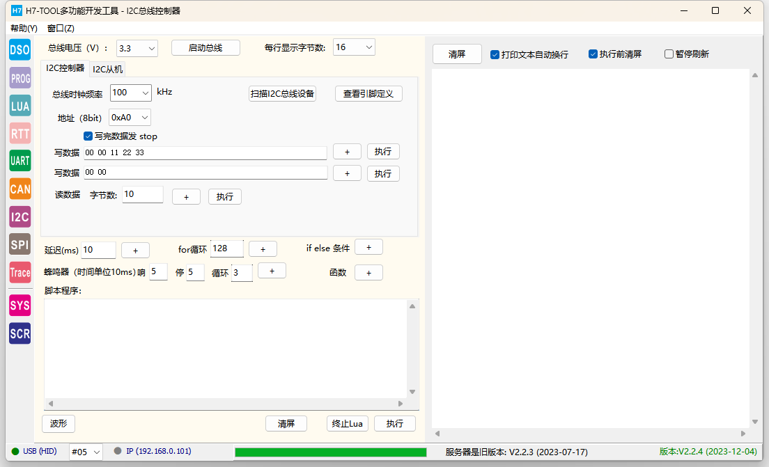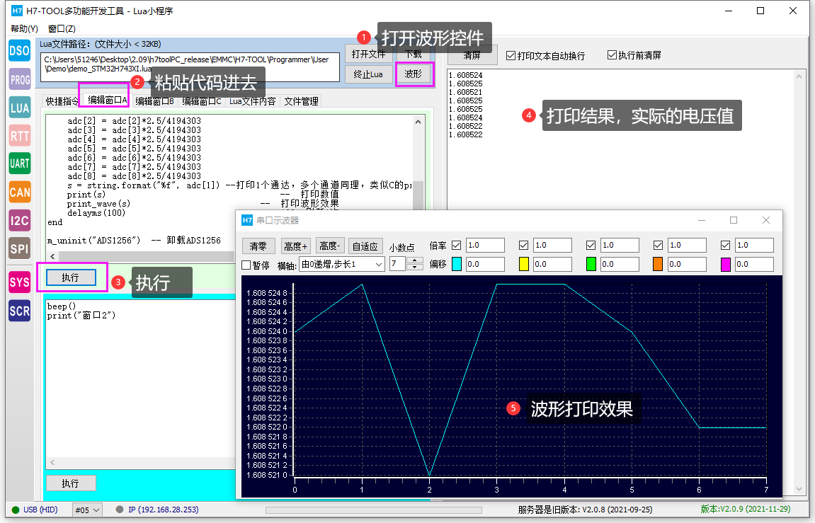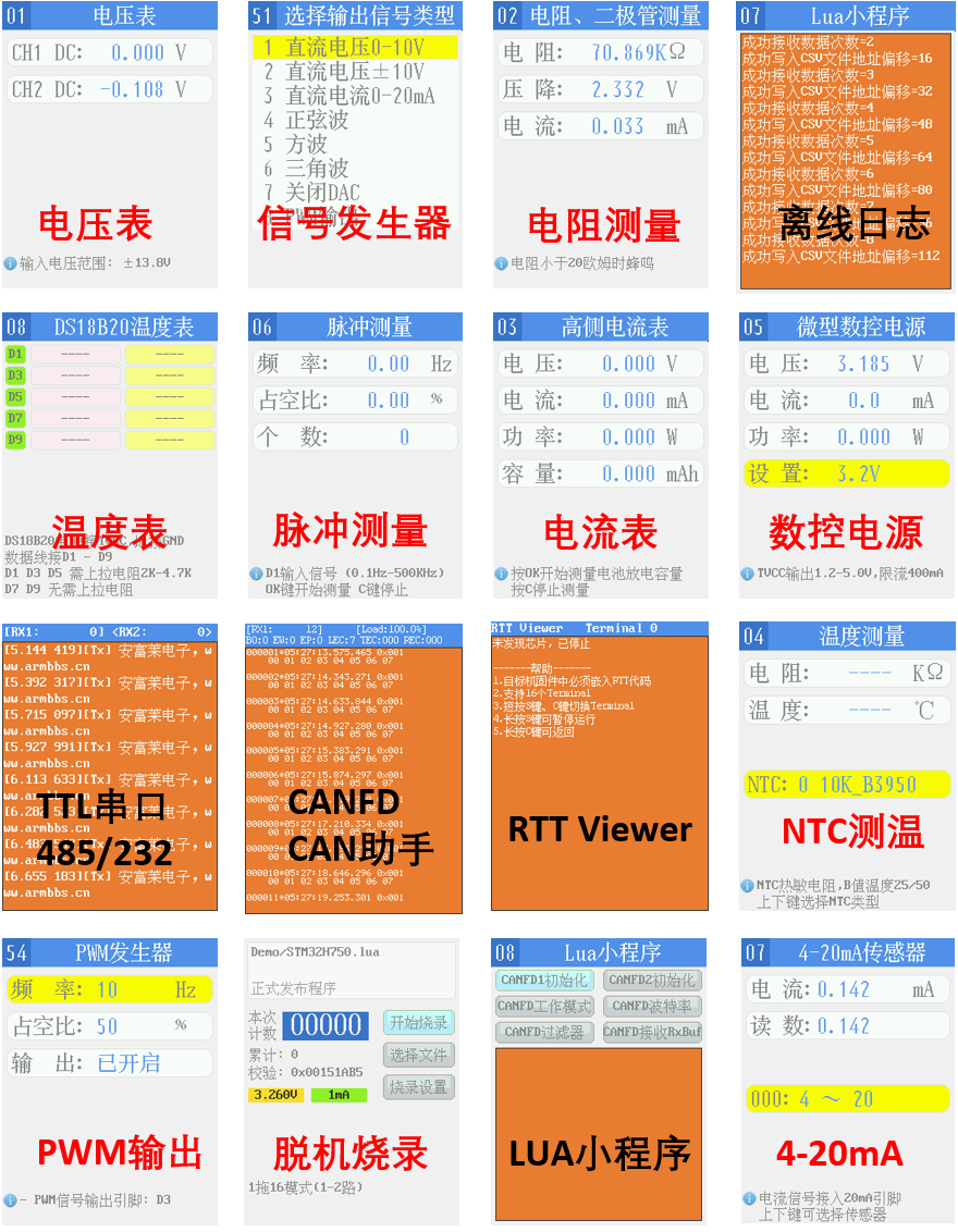 1、H7-TOOL固件2.29发布,高速在线仿真,1拖4和1拖16脱机烧录,数控电源,LUA小程序,RTOS Trace,CMSIS-SVD解析,截图功能,SPI主从控制器,I2C主从控制器,Scope波形,硬件异常黑盒子,RTT Viewer,CAN/CANFD助手,两路高速HID免驱虚拟串口助手,Moddbus主从,CANopen/J1939/OBD15765/UDS解析,250M示波器,信号发生器,4-20mA电流输入输出等全部高速USB免驱一条龙,同时支持板载WiFi和以太网的局域网和外网控制。