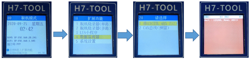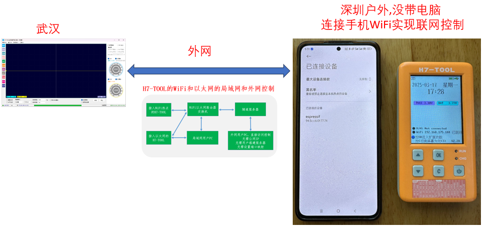 2、H7-TOOL已经支持板载WiFi和以太网的外网控制,用户仅需将TOOL联外网就可以使用上位机软件做远程控制,比如远程脱机烧录,远程RTT,远程CAN,远程串口等。无需公网IP,无需用户搭建服务器,无需设置端口映射,我们都已经搭建好。