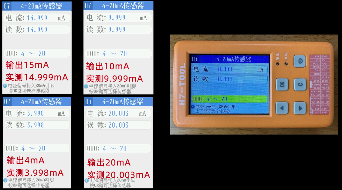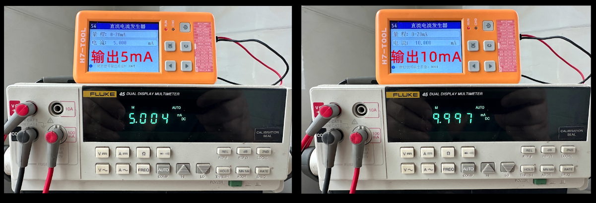 下面是电池供电,0-20mA电流输出, 分别输出5mA和10mA的实际数值测量