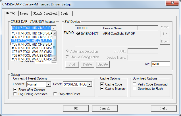(2)仅需用H7-TOOL的SWD接口连接目标板,可随时随地连接目标板,不复位目标板,不影响目标板的正常功能.