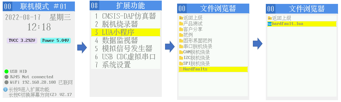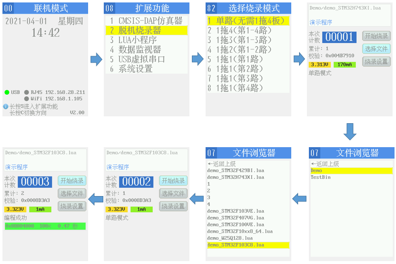 2、通过LUA小程序,我们可以离线,WiFi,以太网和USB四种玩法,且支持内网和外网远程。