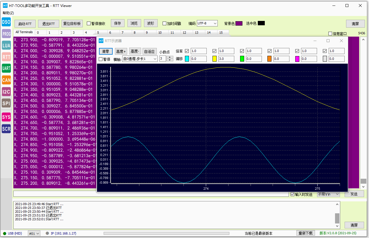 2、JScope的HSS模式是采用的定时器查询方式,如果需要自己控制,大家可以使用TOOL提供的RTT波形打印方式。