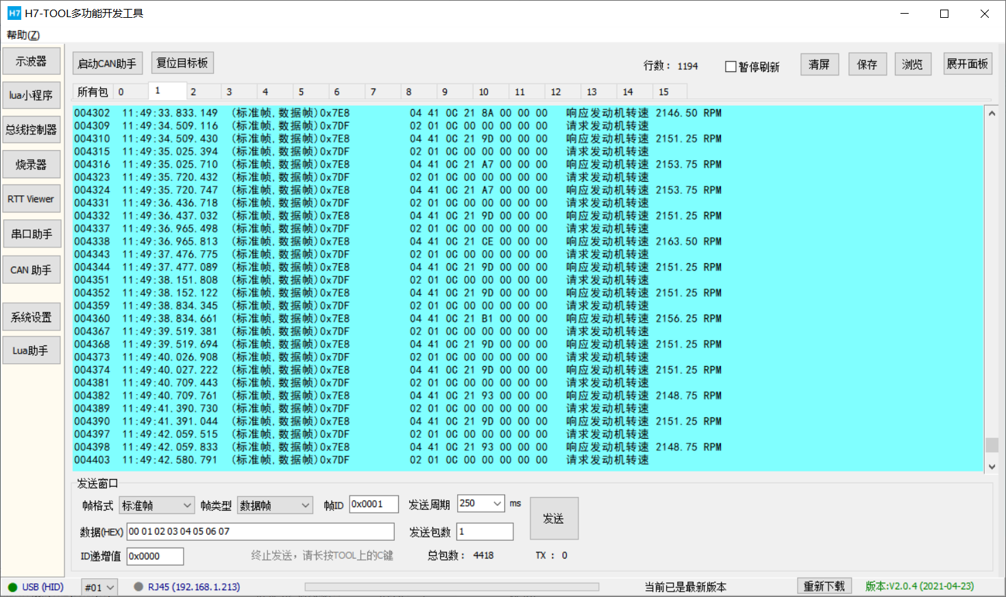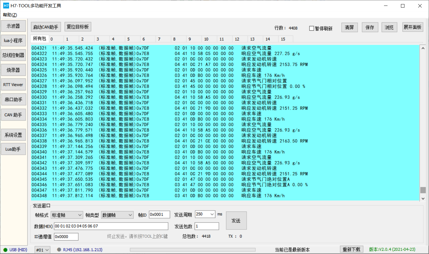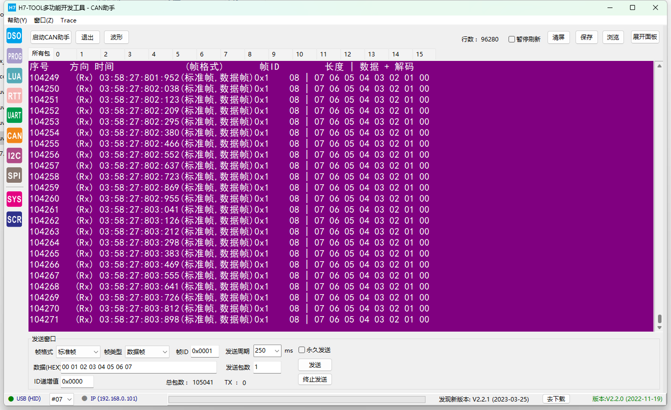 H7-TOOL的CAN/CANFD助手使用说明V2.2,支持8Mbps通信,支持CANopen,J1939,OBD15765,UDS解析(2025-08-16)