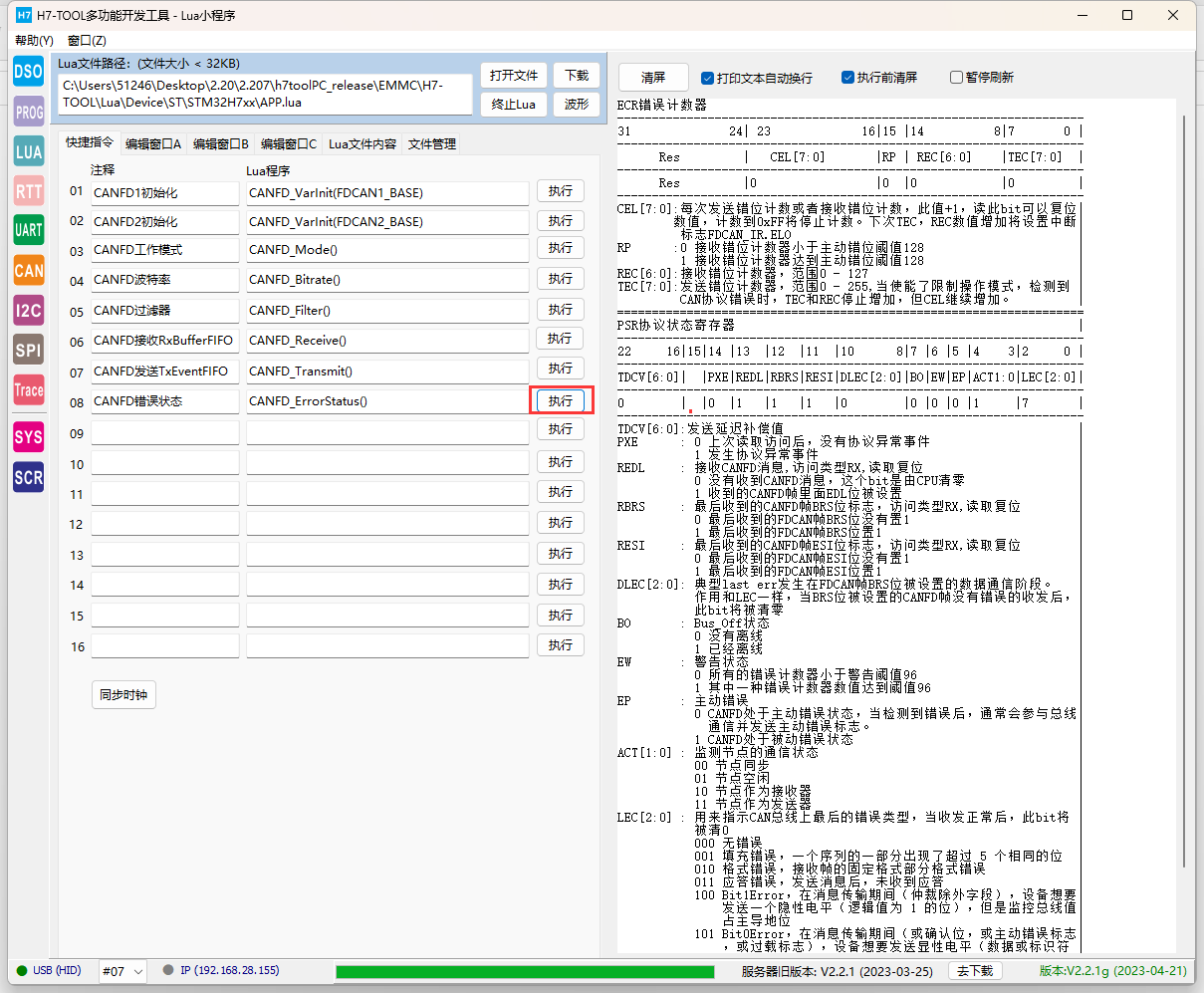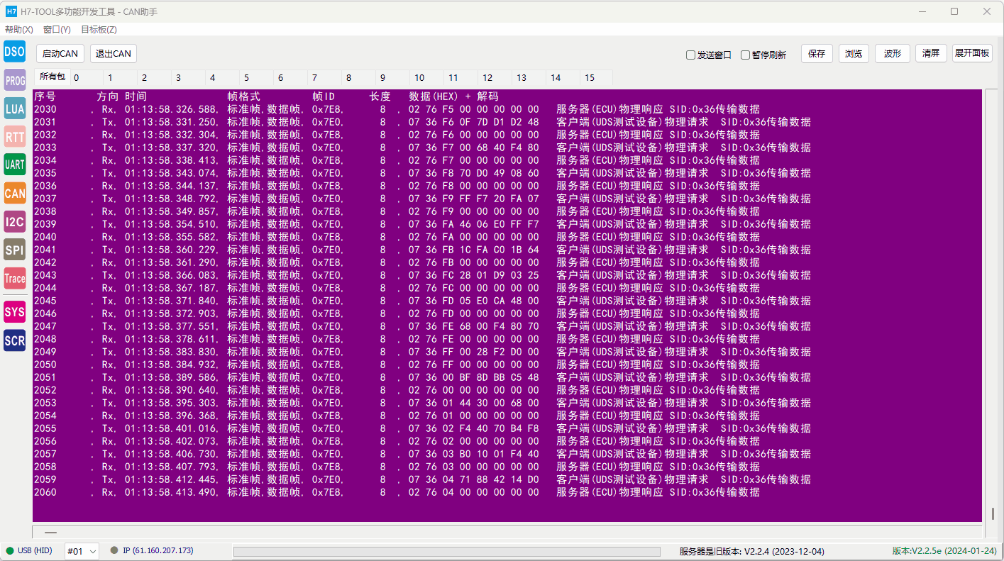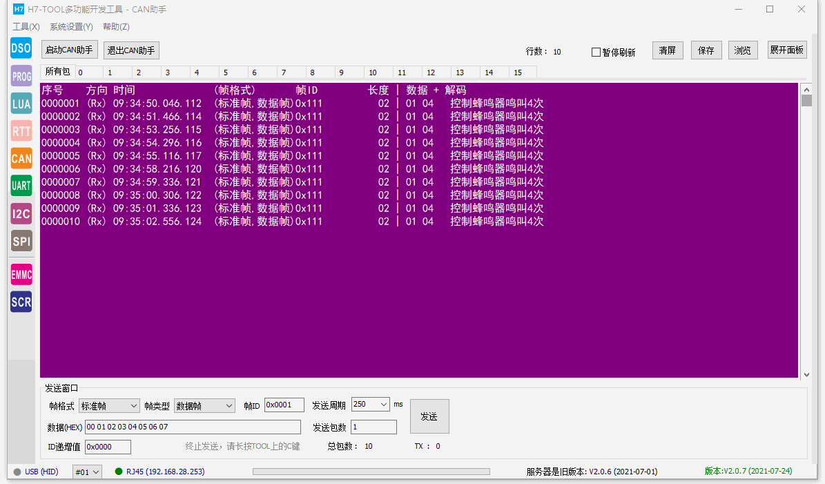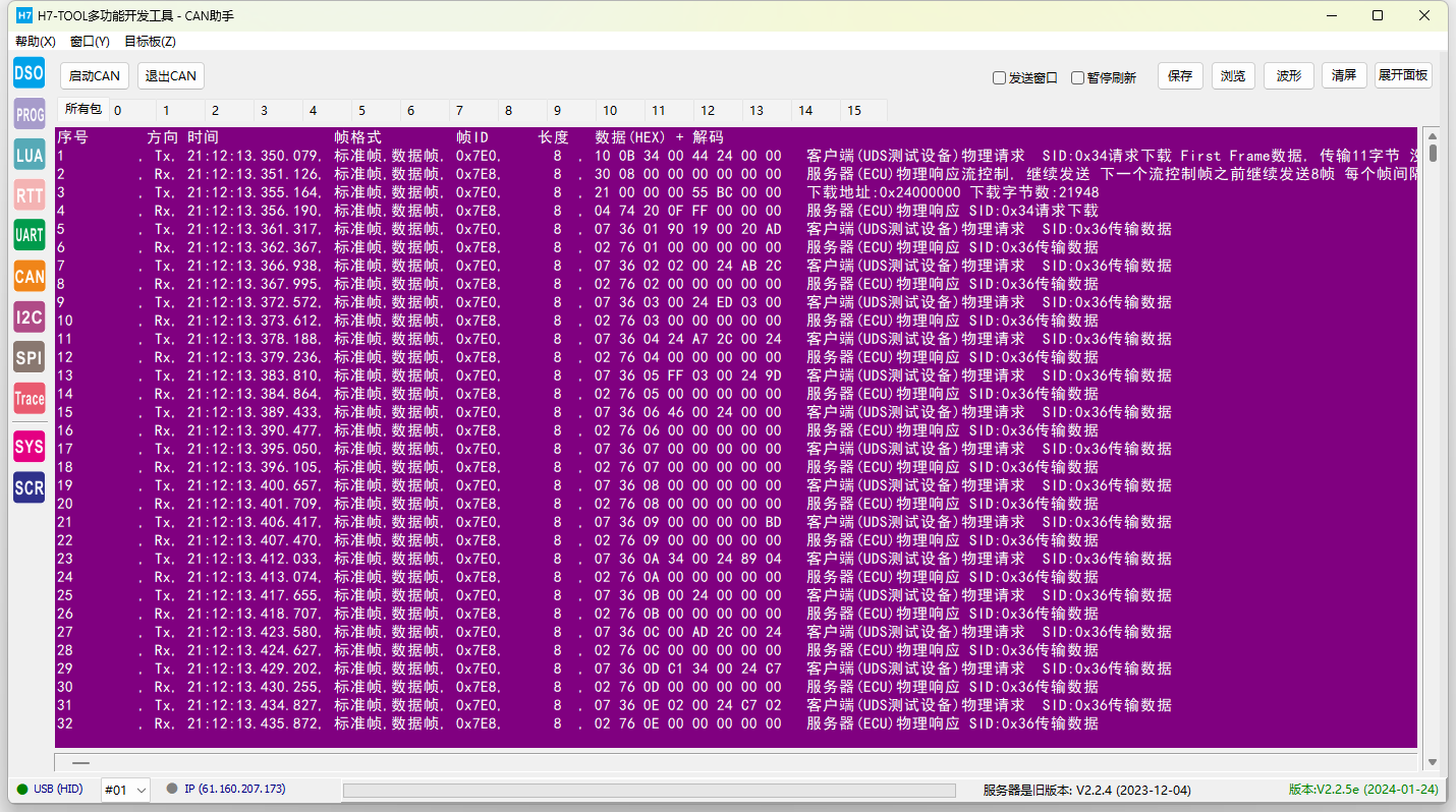 H7-TOOL的CAN/CANFD助手使用说明V2.2,支持8Mbps通信,支持CANopen,J1939,OBD15765,UDS解析(2025-08-16)