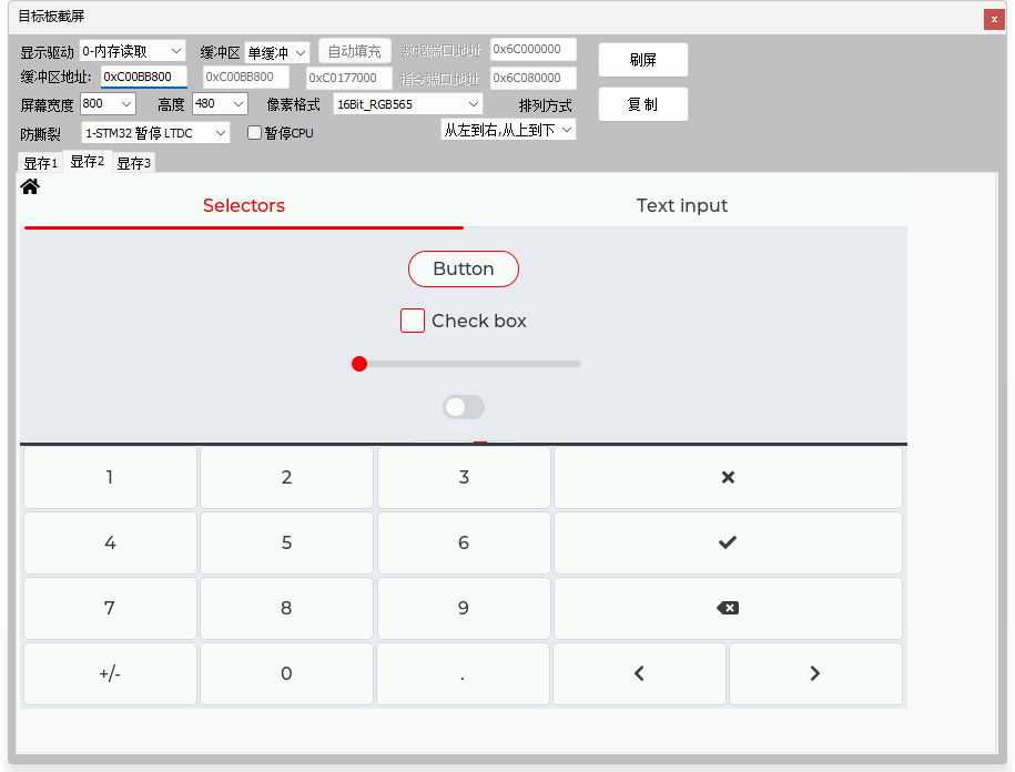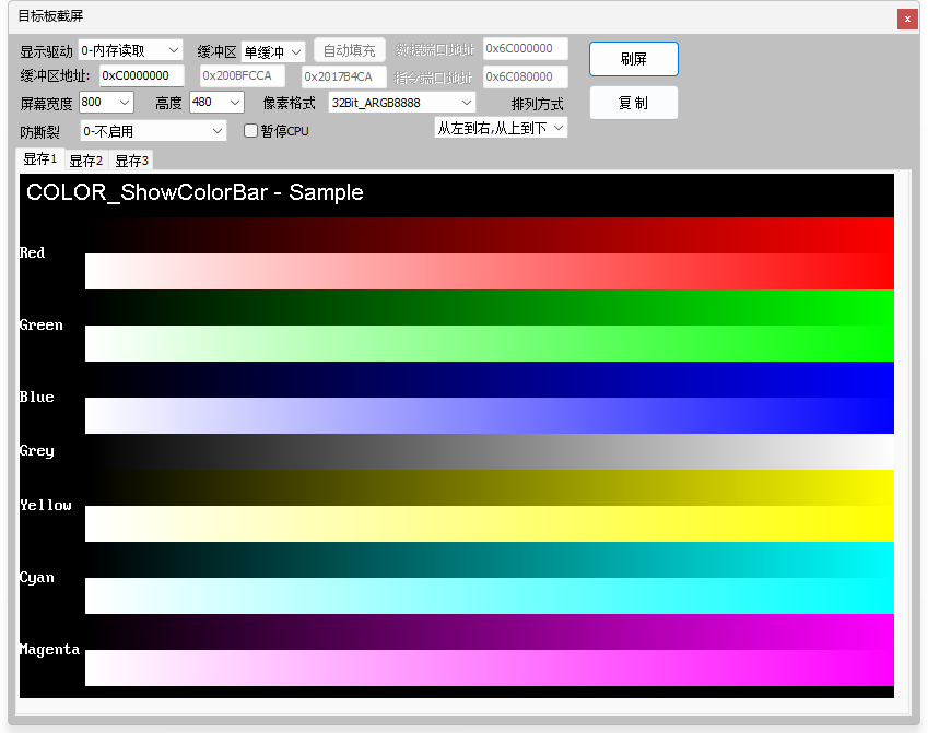 4、颜色格式支持RGB565、RGB888、ARGB8888和1bit单色屏。