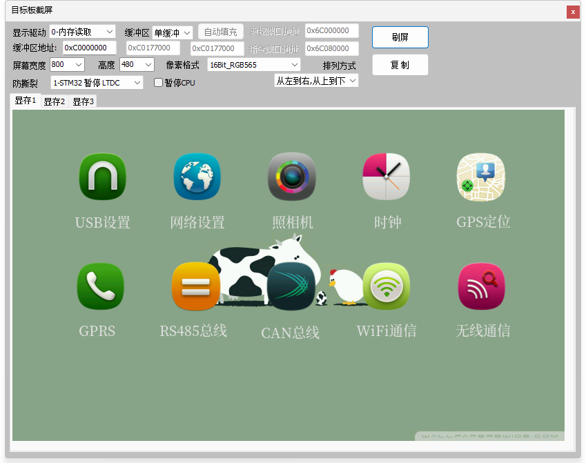 3、裸机,TouchGFX,ThreadX GUIX,emWin,LVGL,AWTK全部测试通过,含多缓冲方式玩法。
