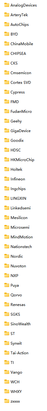 当前整理了一大批厂家的CMSIS-SVD文件到TOOL软件包里面,不用大家自己找了,没有整理到的,后面再逐步添加,大家也可以直接使用自己电脑上带的。大部分厂家制作的CMSIS-SVD文件都是复合规范的。