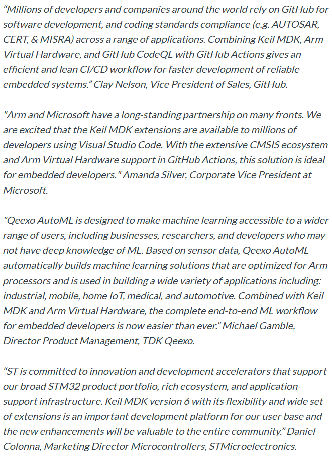 4、MDK6对整个Cortex-M 和 Ethos-U 处理器产品组合进行了优化。当今微控制器的计算功能需要 MLOps 来部署机器学习模型,需要 DevOps 来验证复杂的软件工作负载