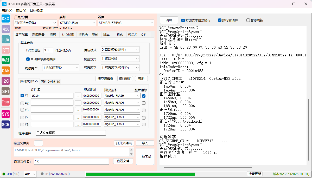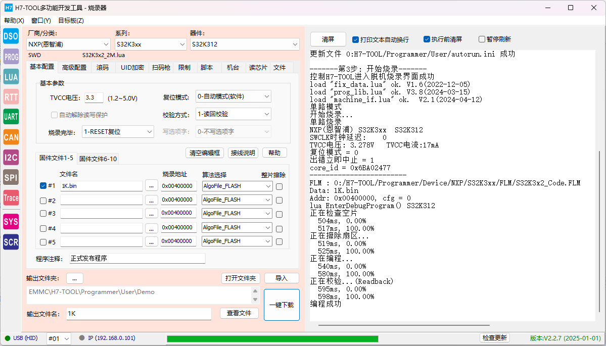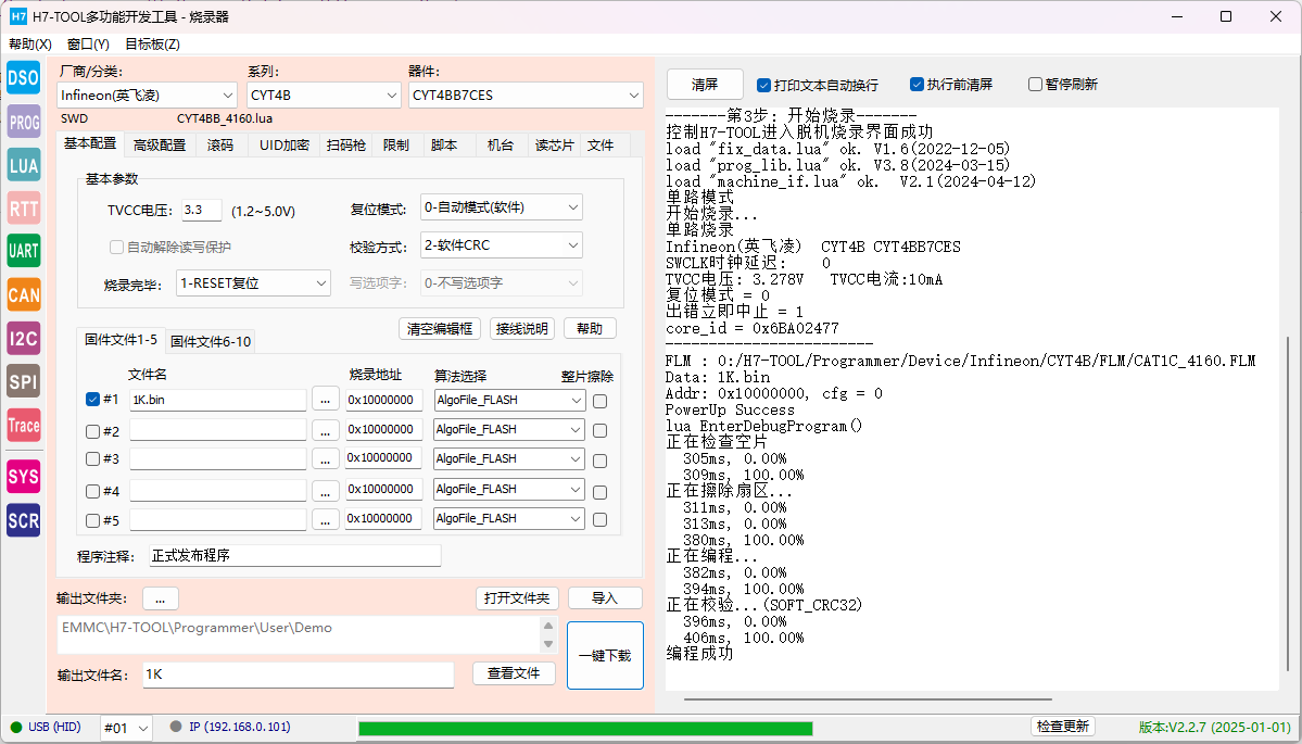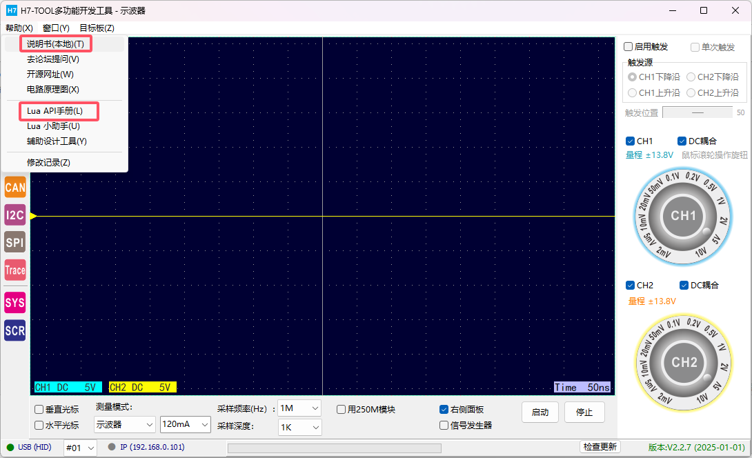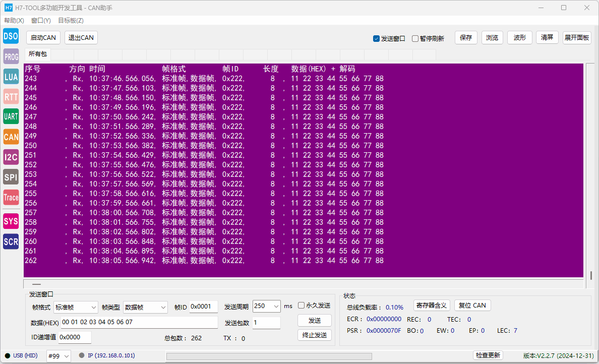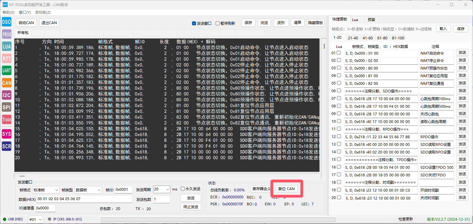 H7-TOOL固件2.27发布,新增加40多款芯片脱机烧录,含多款车轨芯片,发布LUA API手册,CAN助手增加负载率,错误状态信息检测