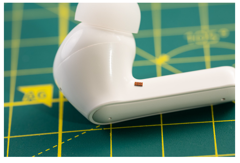 将芯片放在无线耳机上比较: